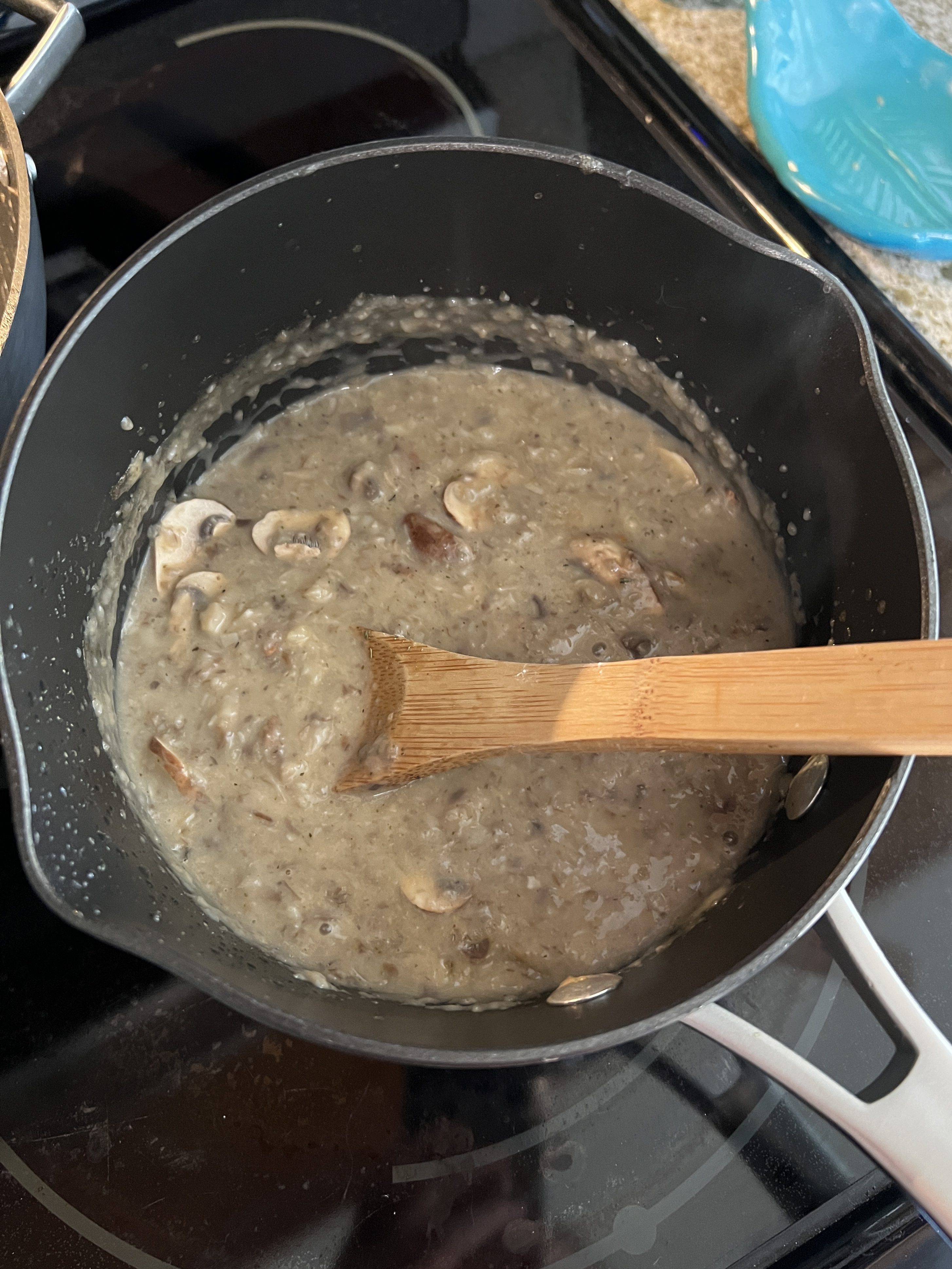 - Stir in the remaining broth and non-dairy milk.