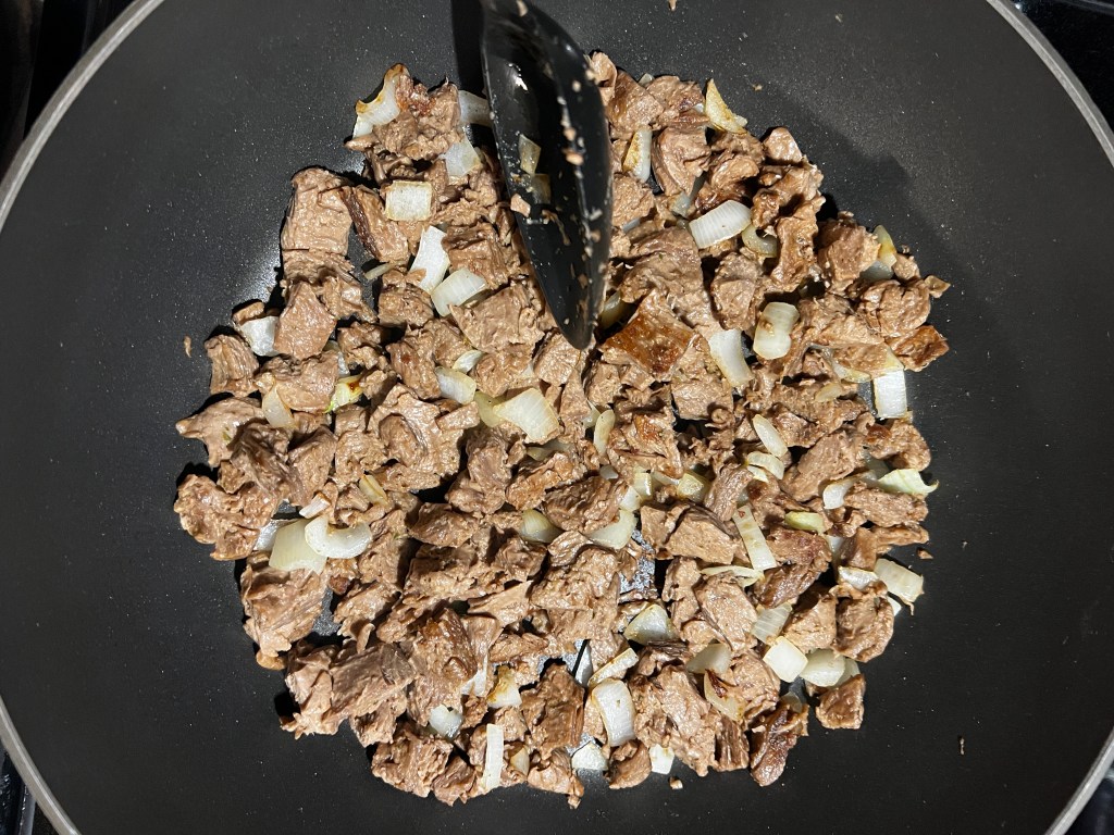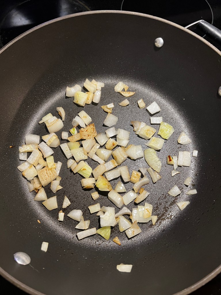 - Add onion and saute until a bit translucent, not brown.
